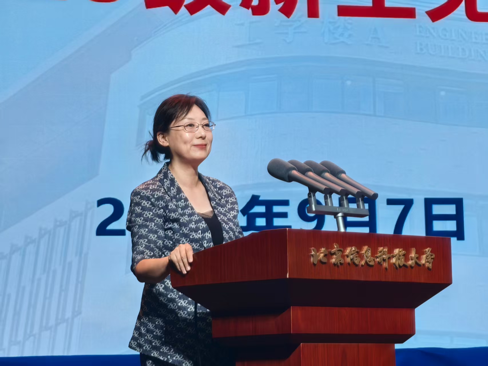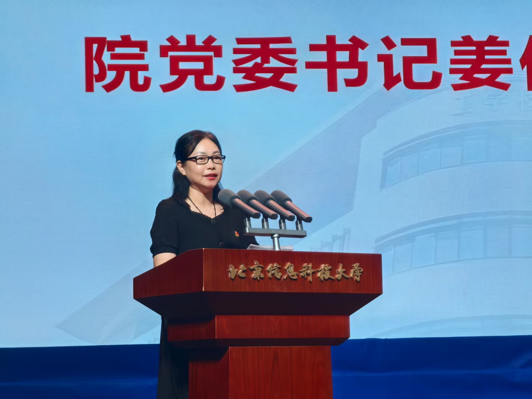 姜伟华代表学院向全体新生致以热烈欢迎,并围绕“立报国之志,求真学问,修高尚之德”的主题发表致辞。她对新生提出了三点希望:一是立报国之志,拓创新之路,成栋梁之才。二是求真学问,练真本领,做真人才。三是修高尚之德,强健康体魄,展青春风采。她勉励新生厚植家国情怀,注重品德修养,锻炼强健体魄,全面成长成才。希望大家珍惜韶华,潜心向学,既要读好“有字之书”,掌握专业知识和技能;也要读好“无字之书”,在实践中增长才干,让青春在光电学院绽放最绚丽的光彩!