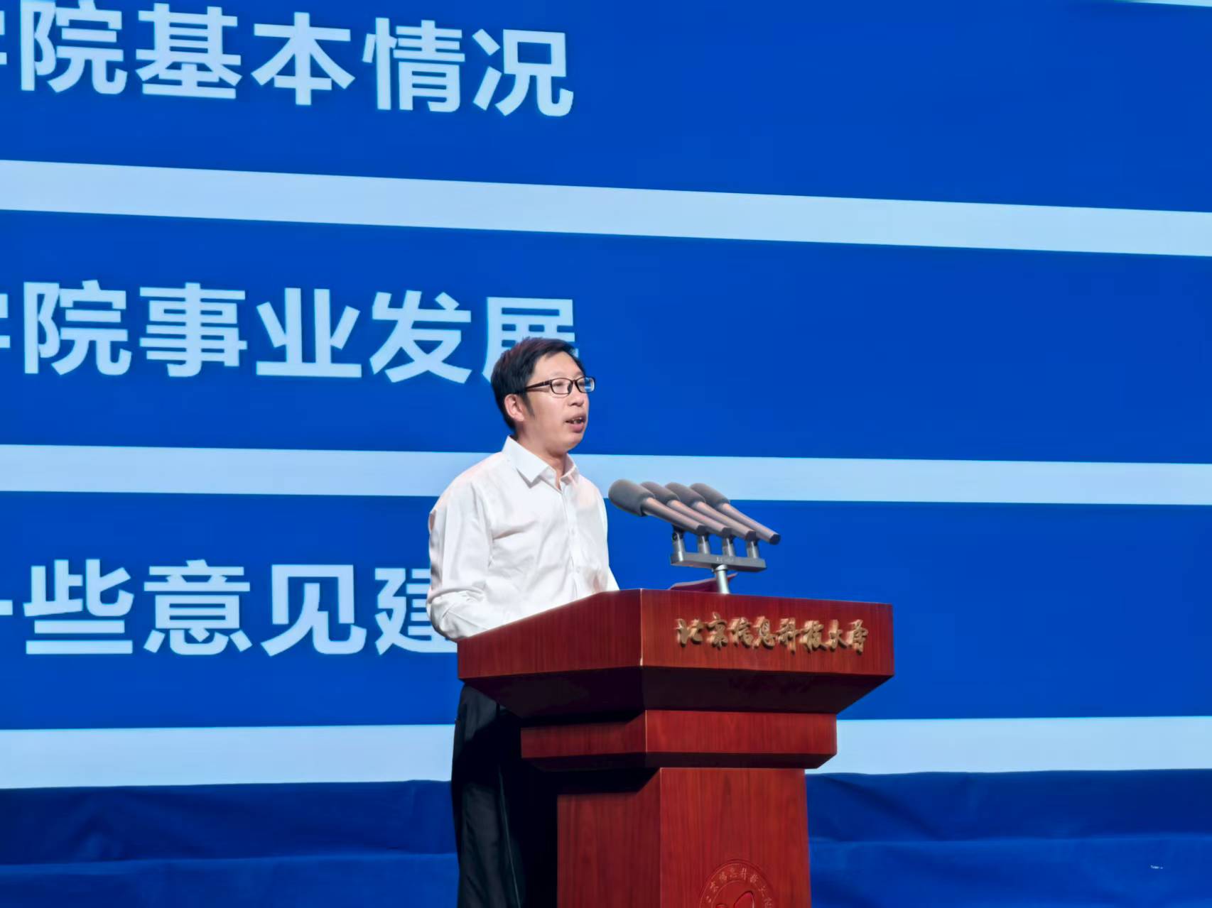 会上,周哲海详细介绍了学院的历史沿革、学科优势、发展现状与未来愿景。他表示,学院拥有扎实的科研平台、完善的实验条件和优秀的师资队伍,为同学们的成长成才提供了有力支持。周哲海勉励新同学们在科研、学习与创新实践中,充分利用学院优质资源,脚踏实地、勇于探索,积极迎接挑战、不断尝试突破,追求卓越。