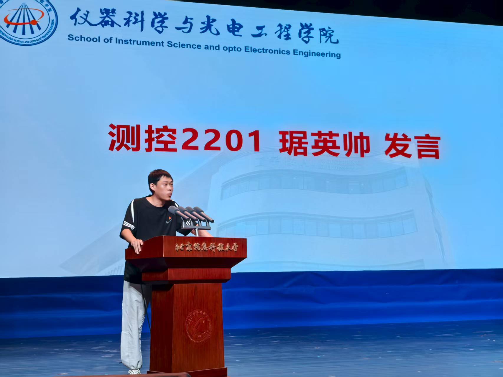 在校生代表测控2201班琚英帅分享了个人成长经验和学习感悟;智能感知2502班罗瑞宁、研2506班邓艺霖分别代表本科生和研究生新生发言,表达了对大学生活的期待和立志成才的决心。