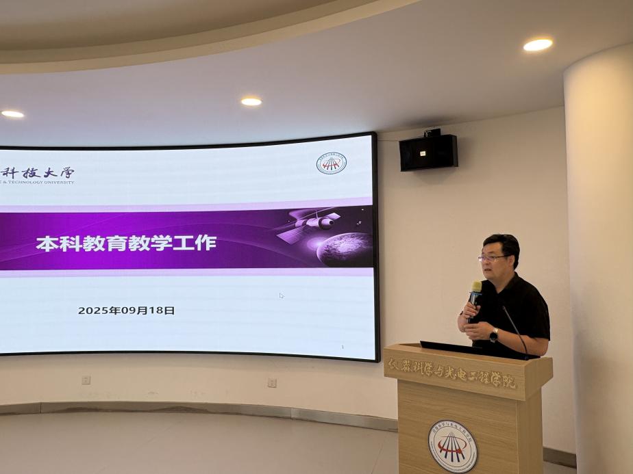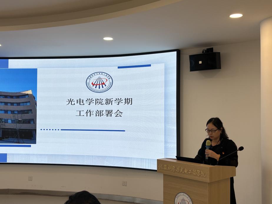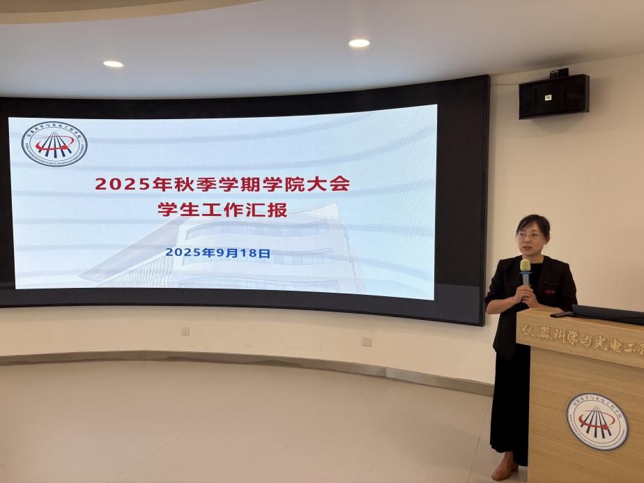 2025年9月18日下午,光电学院在沙河校区工学楼A座501报告厅召开了2025年秋季学期全体教职工大会,落实刚刚召开的学校新学期工作部署会的会议精神,会议结合学院下半年工作任务和目标,在全面总结春季和夏季学期工作成果的基础上,系统部署了秋季学期工作任务。学院党政领导班子成员、全体教职工参会。会议由学院党委副书记、院长周哲海主持。
